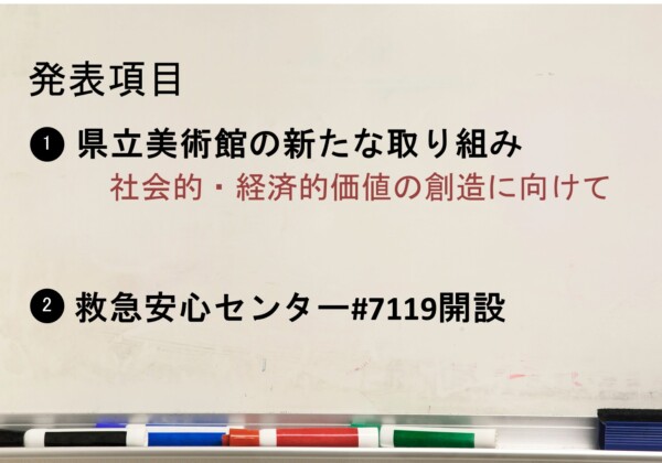 ① 県立美術館の新たな取り組み 社会的・経済的価値の創造に向けて 長崎知事は19日の記者会見で、県立美術館で新たな取り組みを始...